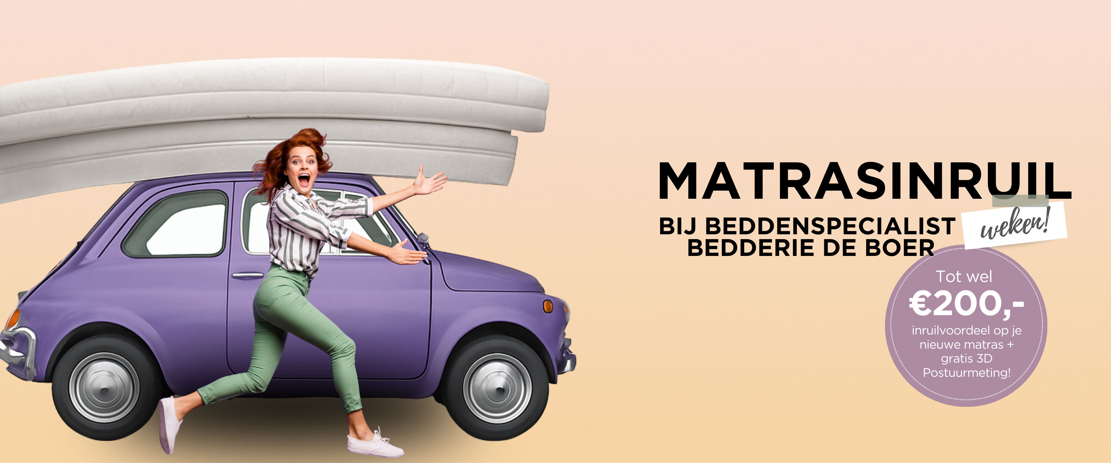 - Inruilkorting maximaal €200,- afhankelijk van het matras wat je koopt.